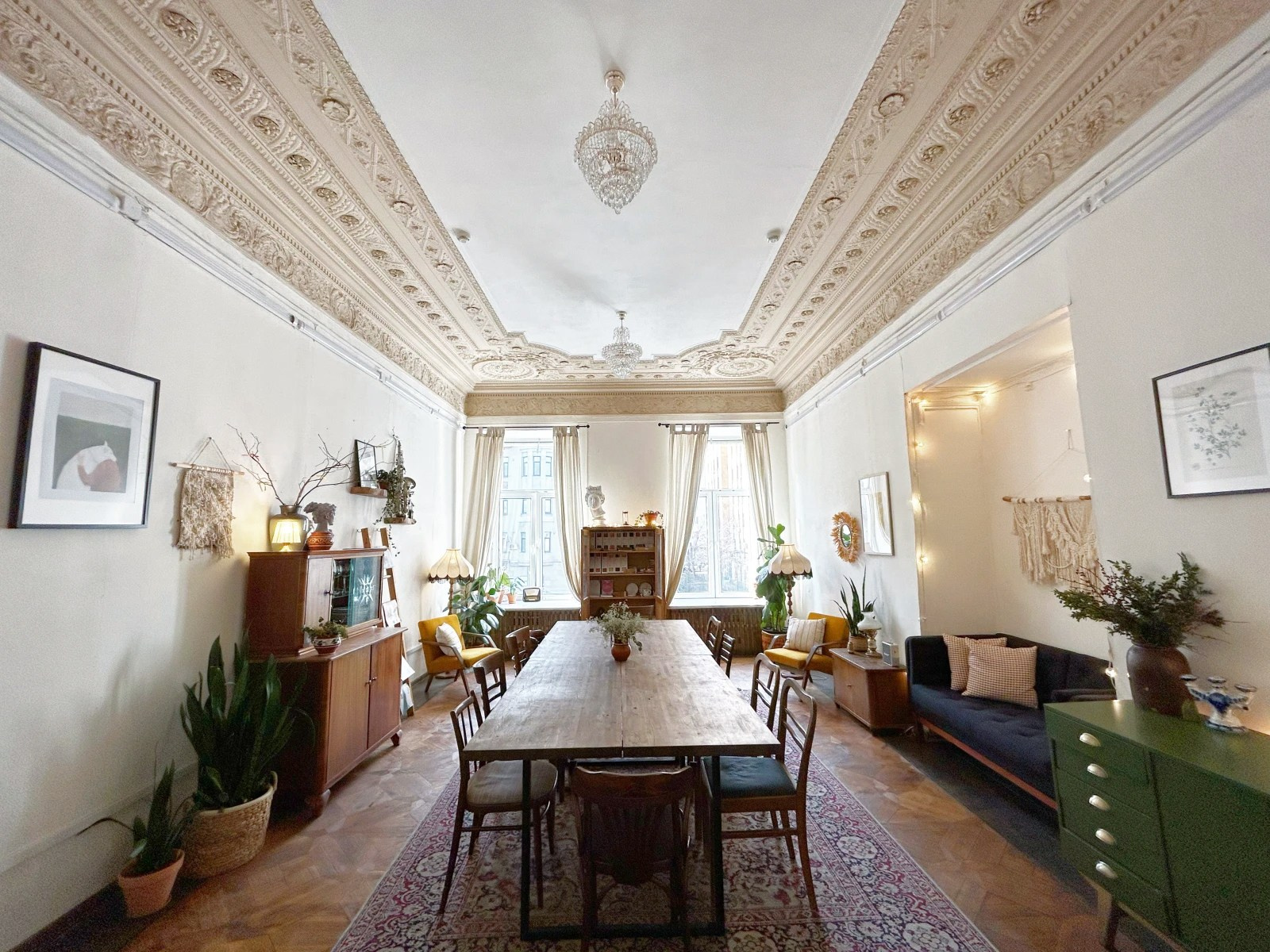Студия предлагает уникальные исторические интерьеры с аутентичной атмосферой конца XIX — начала XX века. Здесь сохранились оригинальные элементы: паркет, лепнина, изразцовые печи, антикварная мебель и люстры. Эти пространства идеально подходят для съёмки винтажных коллекций и создания атмосферного визуального контента для luxury-брендов. Каждый зал обладает собственной богатой историей и неповторимым характером.